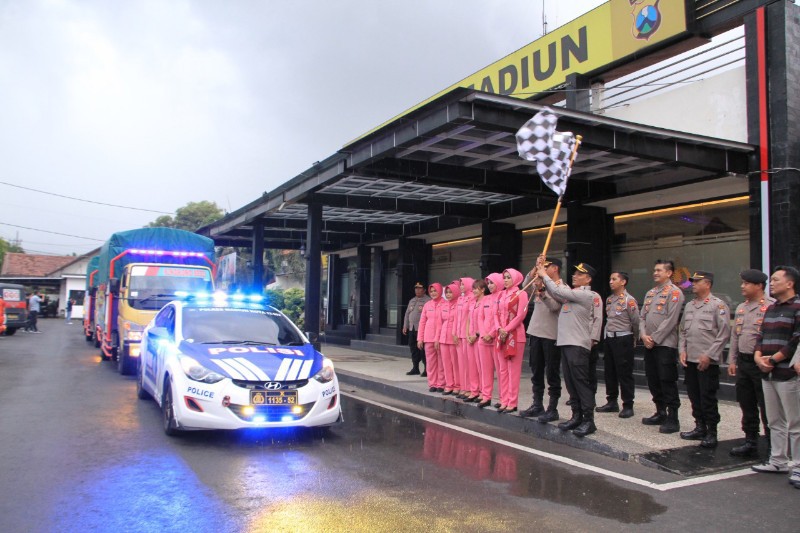 Peduli Sesama, Polres Madiun Kirimkan Bantuan Untuk Korban Bencana Alam di Cianjur