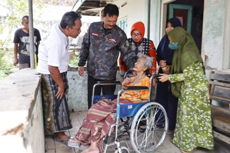 JATIMPOS.CO/KOTA MADIUN - Wali Kota Madiun, Maidi menyalurkan bantuan berupa kursi roda dan tongkat jalan bagi lansia ngebrok di Jalan Kenari, Kelurahan Kejuron, Kota Madiun, Senin (17/10/2022).