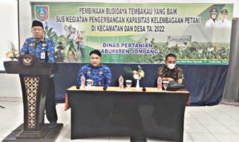 JATIMPOS.CO/JOMBANG - Pemerintah Kabupaten Jombang melalui Dinas Pertanian mengadakan kegiatan pembinaan budidaya tanaman tembakau yang baik di Hotel Green Red, Senin (17/10/2022).