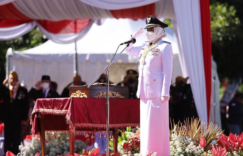 JATIMPOS.CO/TUBAN - Resepsi Kenegaraan menjadi penutup rangkaian Upacara Peringatan HUT ke-77 Kemerdekaan Republik Indonesia pada Rabu (17/08/2022). Bertempat di Pendopo Kridho Manunggal Tuban, Resepsi Kenegaraan diisi dengan pertunjukan wayang orang dengan lakon Tembang Katresnan, kesenian gamelan dan penyerahan juara lomba tiktok OPD.
