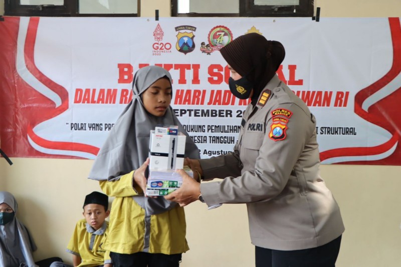 JATIMPOS.CO/MADIUN - Menyambut HUT Polwan ke - 74, Polwan Polres Madiun melaksanakan kegiatan bakti sosial di Panti Asuhan Santunan Yatim Piatu dan Duafa Paguyuban OLDAWA (Ojo Leren Dadi Wong Apik) di Dusun Singe Desa Kuwu Kecamatan Balerejo Kabupaten Madiun, Selasa (2/8/2022).
