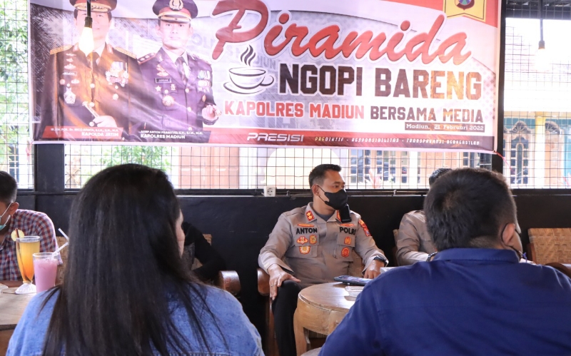 JATIMPOS.CO/KABUPATEN MADIUN - Berbagai upaya dilakukan Kapolres Madiun, AKBP Anton Prasetyo untuk menjalin silaturahmi dengan awak media. Ngopi dan ngobrol santai pun digelar di sebuah warung kopi yang ada di wilayah Kecamatan Kebonsari, Kabupaten Madiun.