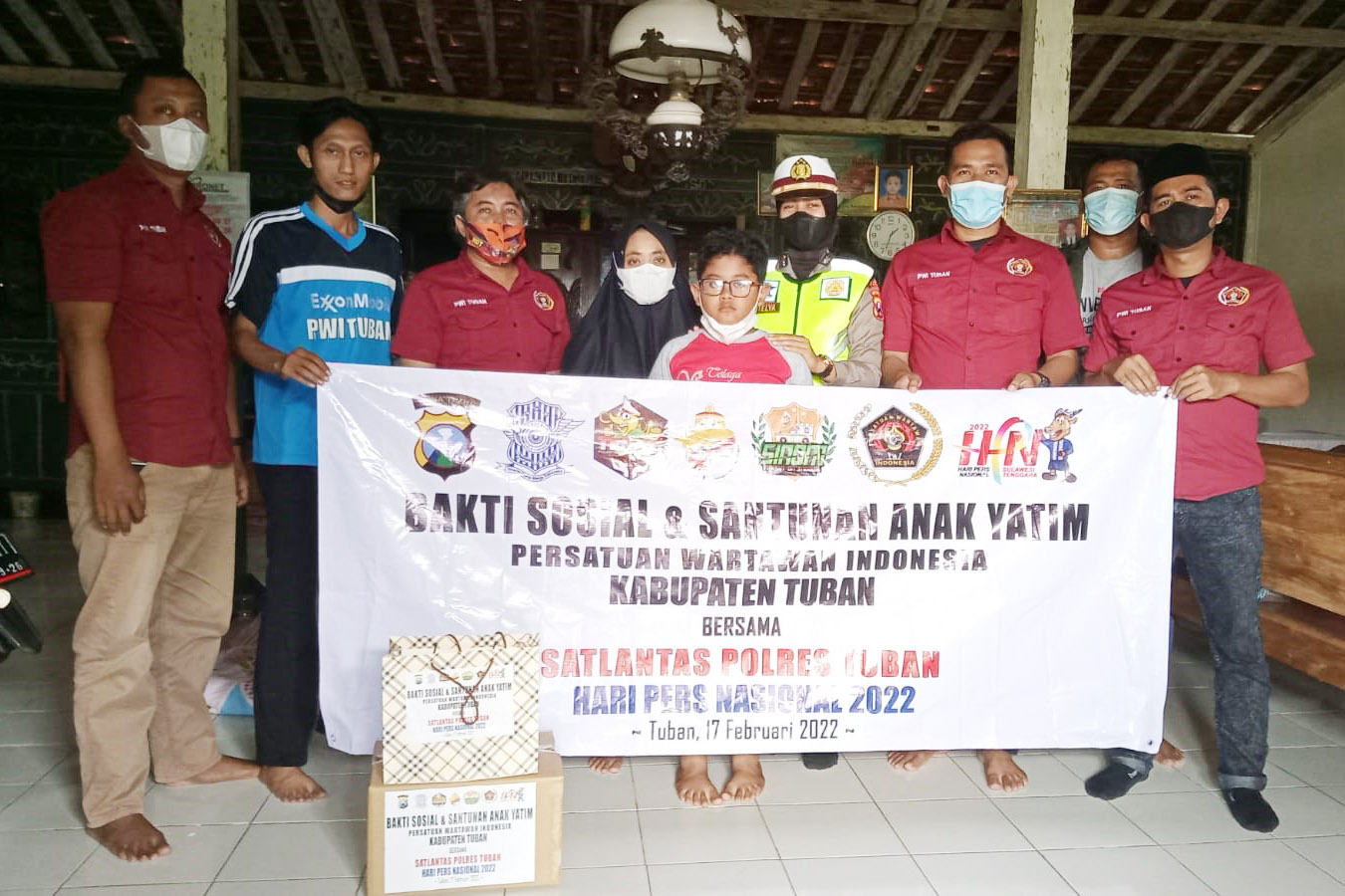 JATIMPOS.CO/TUBAN - Persatuan Wartawan Indonesia (PWI) Kabupaten Tuban menggelar bakti sosial dengan menyantuni dan memberikan bingkisan bagi anak yatim dari keluarga wartawan yang sudah meninggal dunia, pada Jum'at (18/02).