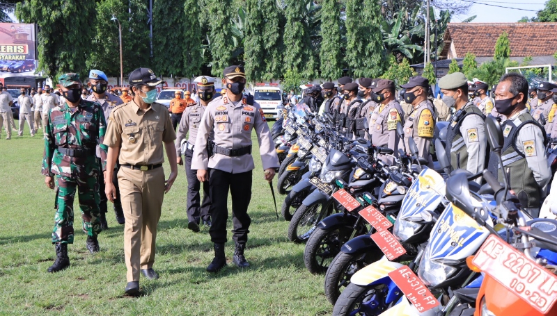 JATIMPOS.CO/KABUPATEN MADIUN - Dalam rangka penegakan protokol kesehatan (prokes) dan cipta kondisi Kamtibmas di wilayah Kabupaten Madiun, jajaran Polres Madiun bekerjasama dengan Kodim 0803/Madiun dan Pemerintah Kabupaten (Pemkab) Madiun membentuk pasukan Pamor Keris atau Patroli Motor Penegakan Protokol Kesehatan di masyarakat wilayah Kabupaten Madiun.