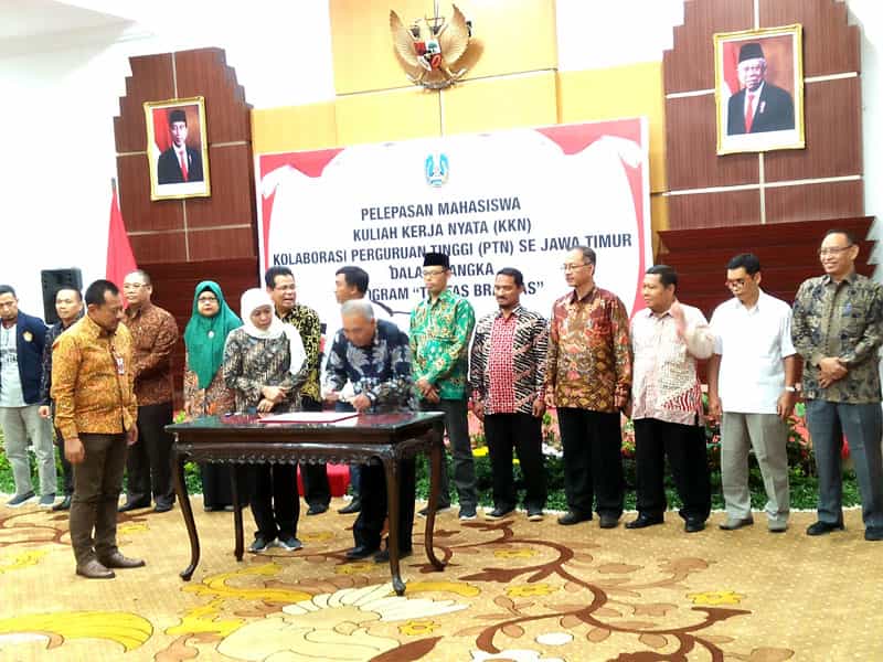 Selain bentuk kolaborasi yang pertama di Indonesia, pelepasan KKN saat ini juga pertamakali dilaksanakan di Gedung Grahadi oleh Gubernur.