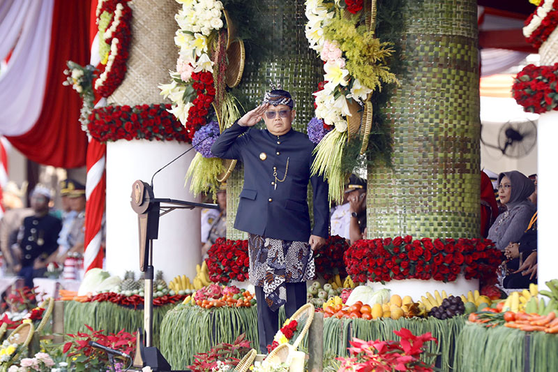 JATIMPOS.CO/SURABAYA- Provinsi Jawa Timur berusia 79 Tahun. Puncak peringatan diselenggarakan di Gedung Negara Grahadi Subaya (12/10/2024) dipimpin Pj Gubernur Adhy Karyono. Dihadiri ratusan undangan pejabat pemerintah pusat, Forkopimda Jatim, tokoh masyakat dan warga.