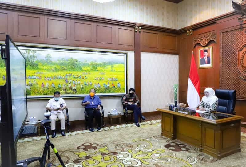 Gubernur Khofifah video conference dengan Menteri Koordinator Bidang Kemaritiman dan Investasi, Luhut Binsar Pandjaitan