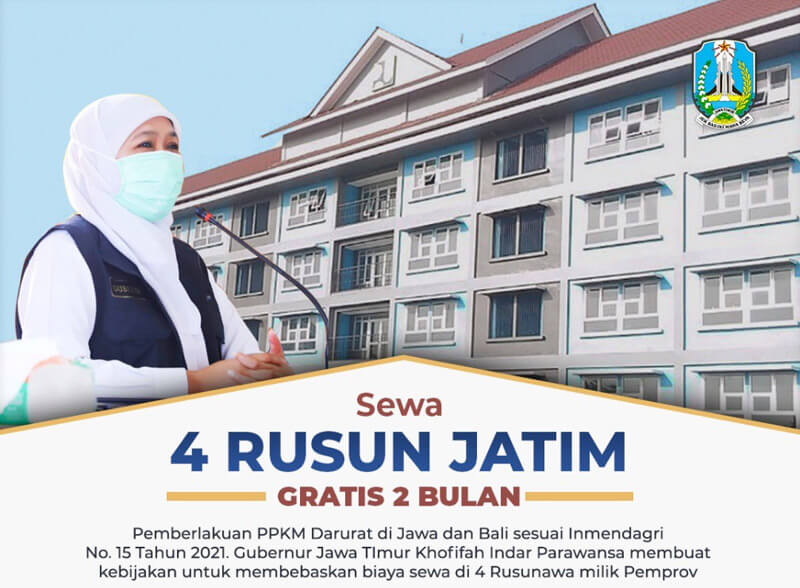 Sebelumnya, Gubernur Khofifah juga menggratiskan biaya sewa bulan Mei dan Juni 2021. Kebijakan ini diambil guna meringankan beban masyarakat yang menyewa Rusunawa selama pemberlakukan Pemberlakuan Pembatasan Kegiatan Masyarakat (PPKM) Darurat.