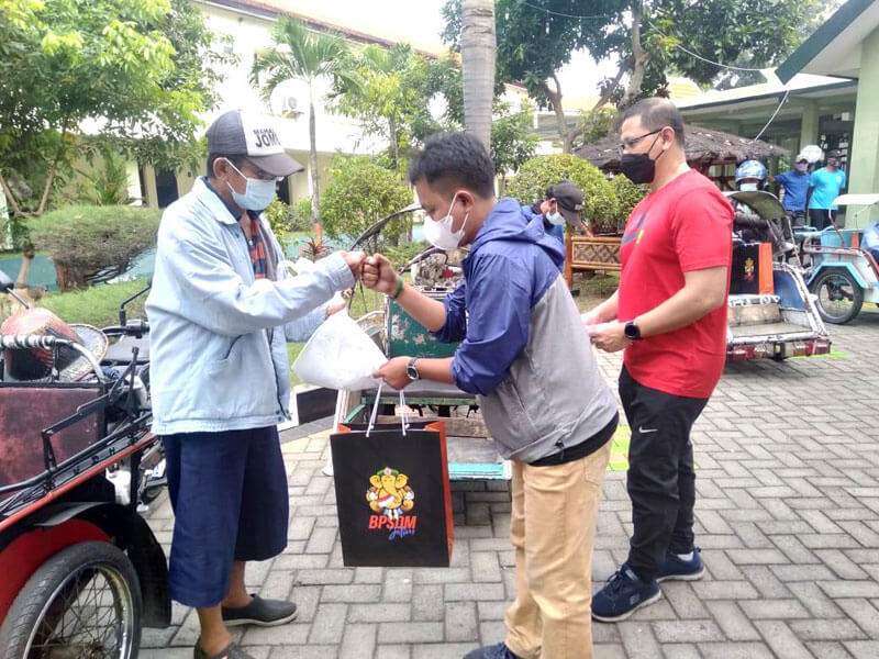 Secara simbolis daging kurban dibagikan kepada 10 warga yang berprofesi sebagai tukang becak yang penyerahannya berlangsung di depan Masjid Al Huda di lingkungan Kantor BPSDM Jatim.