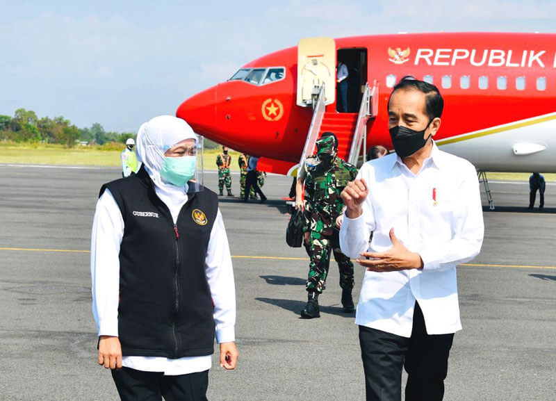 JATIMPOS.CO//MADIUN- Presiden RI Joko Widodo berkunjung ke Madiun, Kamis siang (19/8). Dihadapan Presiden di Pendopo Ronggo Djumeno Kabupaten Madiun, Gubernur Jawa Timur Khofifah Indar Parawansa melaporkan penanganan covid di Jawa Timur.