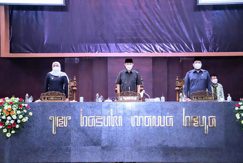 Gubernur Jatim Khofifah Indar Parawansa, Rabu (22/9) menyampaikan Pengantar Nota Keuangan Rancangan Peraturan Daerah Provinsi Jatim Tentang Perubahan Anggaran Pendapatan dan Belanja Daerah Tahun Anggaran 2021, di Gedung DPRD Jatim.