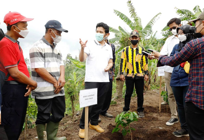Tak berhenti di situ, sebagai bentuk dukungan langsung terhadap para petani milenial, Wagub Emil pun memberikan 5.000 bibit kopi untuk petani kopi di Desa Sidomulyo, Jember.