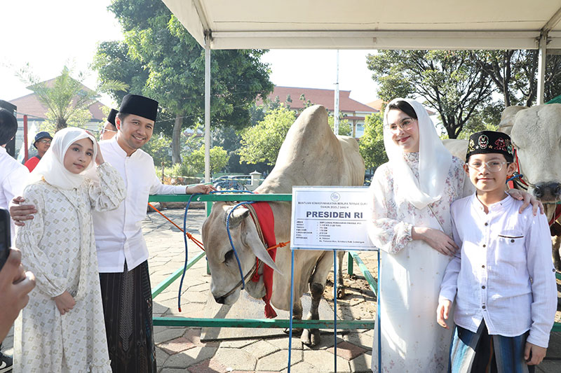 Plt. Gubernur Jatim Sholat Idul Adha Bersama Keluarga di Masjid Al Akbar dan Serahkan Sapi Qurban Presiden