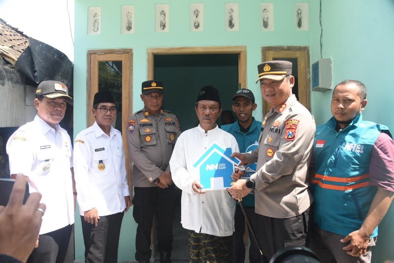 Wujud Polri Peduli, Polres Lamongan Beri Bantuan Rumah Layak Huni Bagi Warga Miskin Melalui Program Bedah Rumah