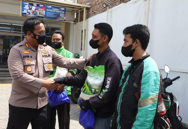 Terdampak Kenaikan Harga BBM, Polres Mojokerto Bagikan Sembako ke Tukang Ojek