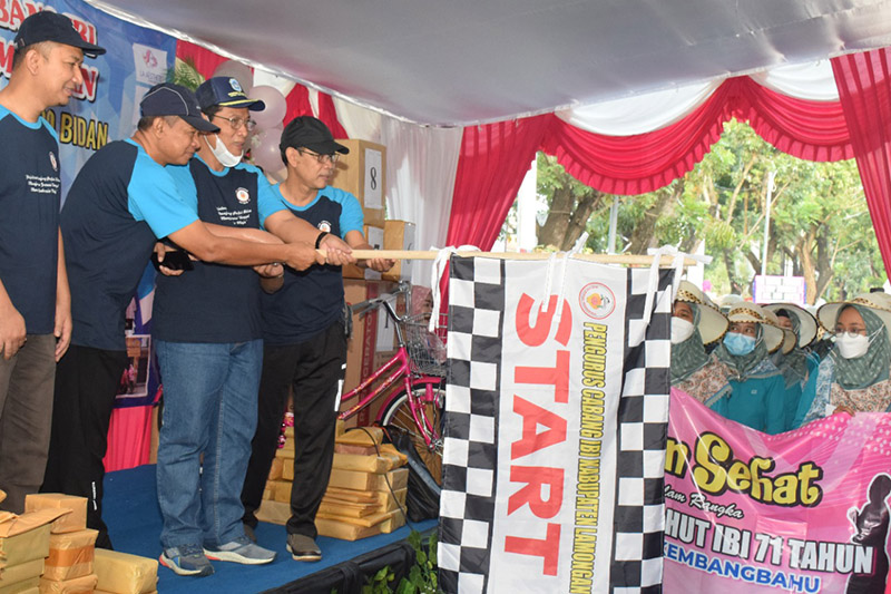 JATIMPOS.CO/LAMONGAN - Bertepatan dengan Hari Ulang tahun (HUT) Ke-71 Ikatan Bidan Indonesia (IBI), IBI Cabang Lamongan menggelar jalan sehat yang diberangkatkan langsung Wakil Bupati Lamongan Abdul Rouf di halaman Ruko Demangan Regency Lamongan, Jumat (24/6/2022).