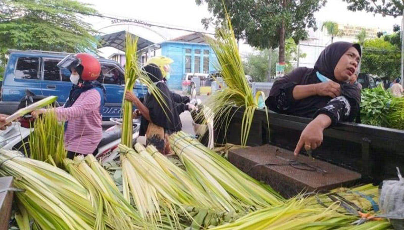 JATIMPOS.CO/LAMONGAN – Momen Lebaran tidak hanya pedagang roti atau snack yang ketiban rejeki, pedagang janur atau daun kelapa muda pun turut merasakan manisnya Lebaran tahun 2022 ini.
