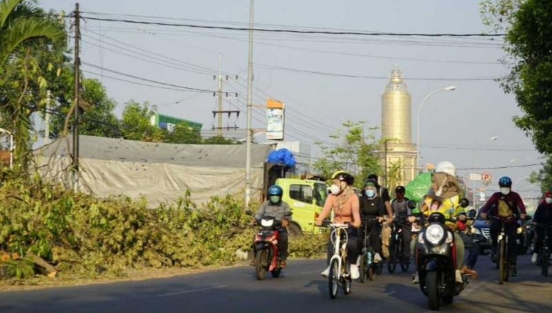 JATIMPOS.CO/KOTA MOJOKERTO - Proyek peningkatan jalan Empunala Kota Mojokerto sepanjang 2,3 kilometer mulai jalan bypass hingga simpang empat Sekarsari mulai dikerjakan sejak 23 maret 2022. Terlihat dilokasi pihak kontraktor sudah melakukan penebangan pohon di sepanjang jalan Empunala.