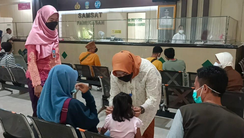 JATIMPOS.CO/PAMEKASAN - Dalam rangka memperingati Hari Kartini yang bertepatan pada tanggal 21 April 2022, sejumlah personel Polisi Wanita (Polwan) Satlantas Polres Pamekasan yang bertugas di bagian pelayanan SIM dan Samsat Polres Pamekasan mengenakan pakaian tradisional kebaya, Kamis (21/4/2022).