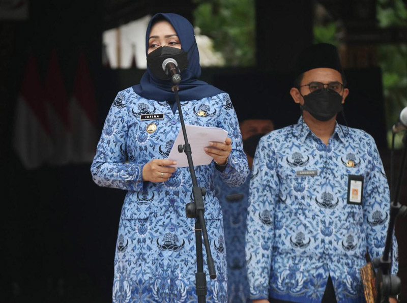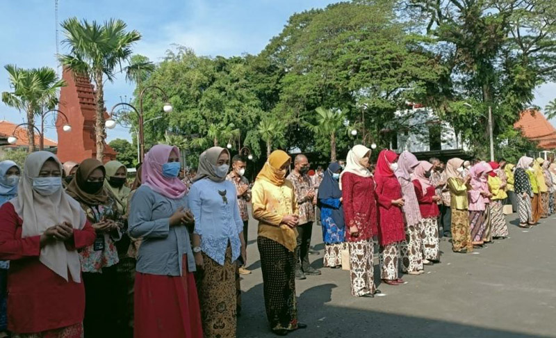 JATIMPOS CO/KABUPATEN MOJOKERTO - Dalam rangka memperingati Hari Kartini 2022 seluruh karyawati Pemerintah Kabupaten Mojokerto mengikuti apel pagi bersama dengan memakai baju kebaya, baju yang biasa di pakai R.A Kartini.