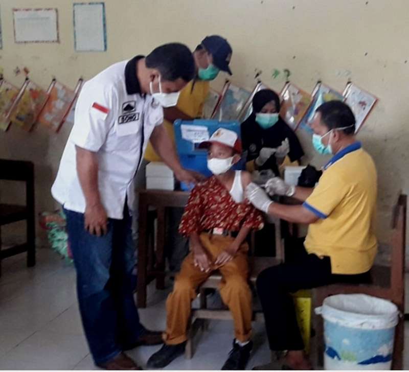 JATIMPOS.CO/LAMONGAN – Upaya percepatan terbentuknya herd immunity (kekebalan kelompok) untuk memutus penyebaran Covid-19, Pemerintah terus menggenjot pelaksanaan vaksinasi hingga langsung turun ke sekolah-sekolah Dasar (SD) dimana kali ini dengan sasaran anak usia 6 hingga 11 tahun di SDN Balongwangi Kecamatan Tikung Kabupaten Lamongan, Kamis (30/12/2021).