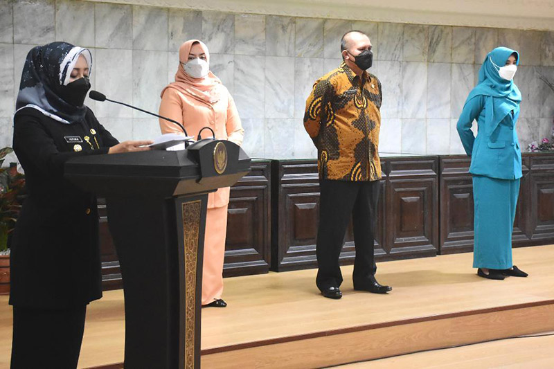 JATIMPOS.CO/KABUPATEN MOJOKERTO - Sebanyak 11 pejabat administrator dan pengawas di lingkungan Pemkab Mojokerto dilantik dan diambil sumpahnya oleh Bupati Mojokerto Ikfina Fahmawati di ruang Satya Bina Karya, Kamis (30/12) sore.