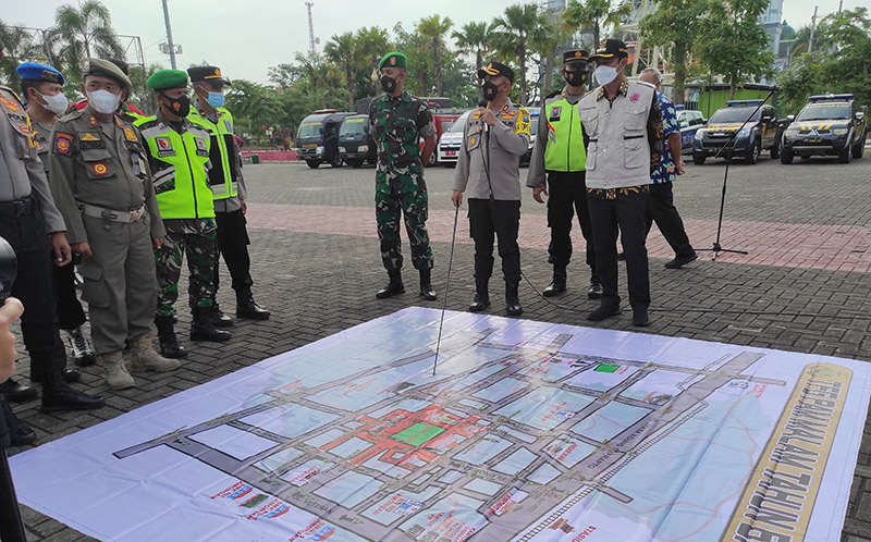 JATIMPOS.CO/LAMONGAN - Menjelang malam pergantian tahun baru, Pemerintah Kabupaten Lamongan bersama Polres Lamongan dan Kodim 0812 Lamongan menggelar apel siaga malam tahun baru 2022, Jumat (31/12/2021).