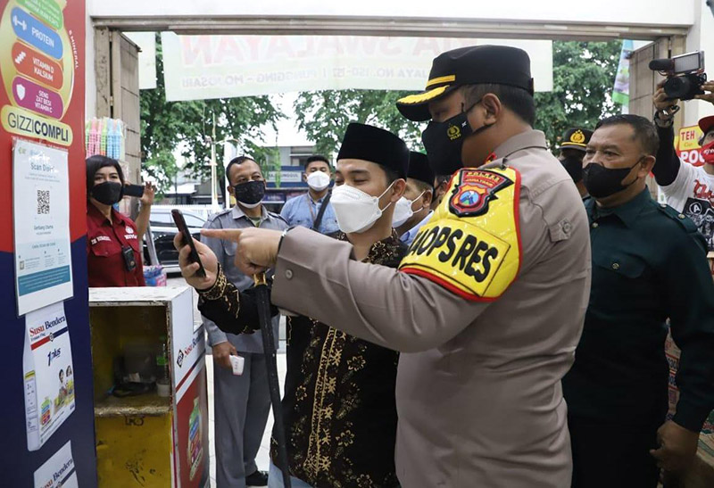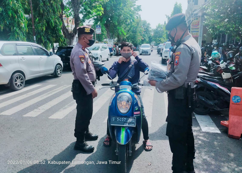 JATIMPOS.CO/LAMONGAN – Upaya mencegah serta mengendalikan penyebaran virus Omicron serta memelihara Harkamtibmas di wilayah Lamongan, Kasat Samapta Polres Lamongan AKP Mukhamad Fadelan bersama anggota melaksanakan patroli dialogis.