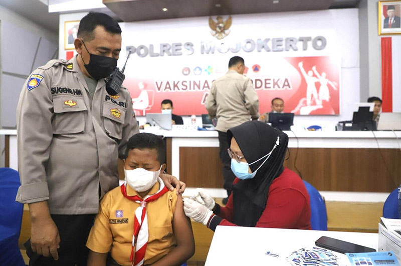 Vaksinasi Merdeka Anak 6-11 Tahun di Mapolres Mojokerto Dipantau Kapolri