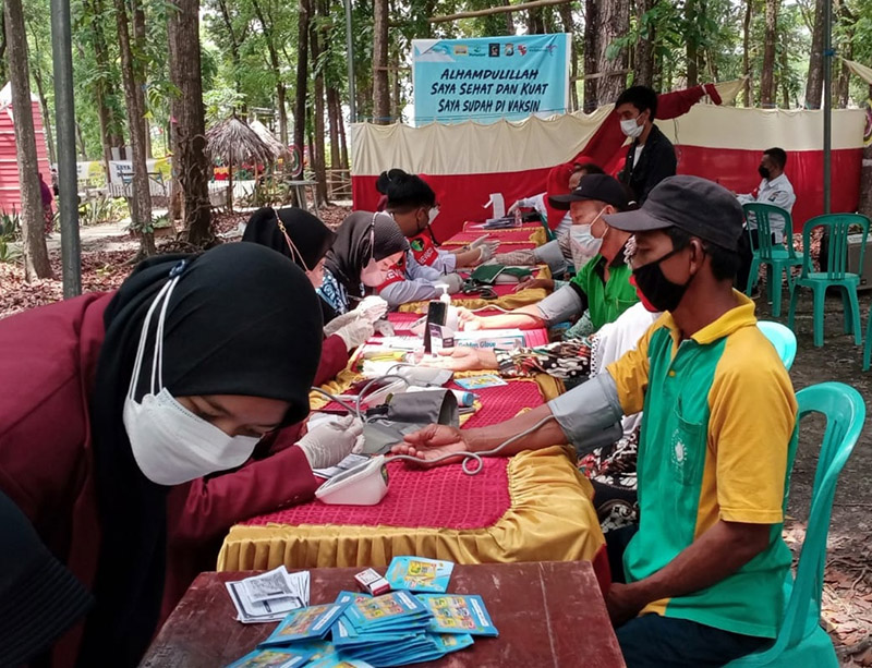 JATIMPOS.CO/LAMONGAN - Vaksinasi Covid-19 kini mulai banyak dilakukan di luar ruangan. Destinasi wisata pun jadi alternatif, seperti yang dilakukan MPC Pemuda Pancasila Lamongan menggelar Vanik yakni vaksinasi sambil piknik di obyek wisata G-Park Kecamatan Sugio Kabupaten Lamongan.