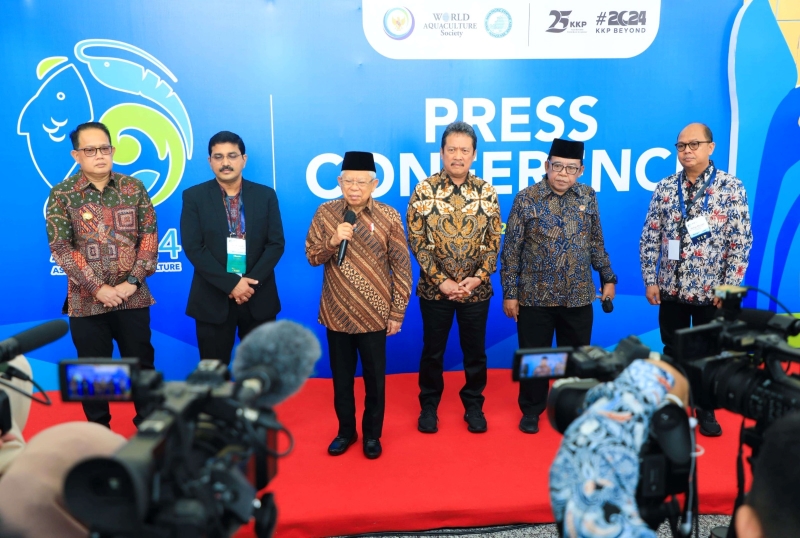 JATIMPOS.CO/SURABAYA - Penjabat (Pj.) Gubernur Jawa Timur Adhy Karyono mendampingi kunjungan kerja Wakil Presiden RI Ma’ruf Amin pada kegiatan pembukaan Asian Pacific Aquaculture (APA) 24 di Grand City Convention & Exhibition Hall Surabaya, Kamis (4/7).