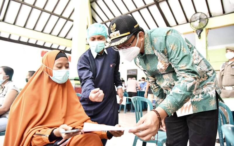 JATIMPOS.CO/SIDOARJO - Pemkab Sidoarjo bersama Polda Jatim dan juga Arta Graha Peduli saling berkolaborasi dengan didukung oleh Anggota DPR-RI Puti Guntur Soekarno, menggelar vaksin massal di Desa Wage Kecamatan Taman Sidoarjo pada hari Sabtu (29/8/2021) siang.