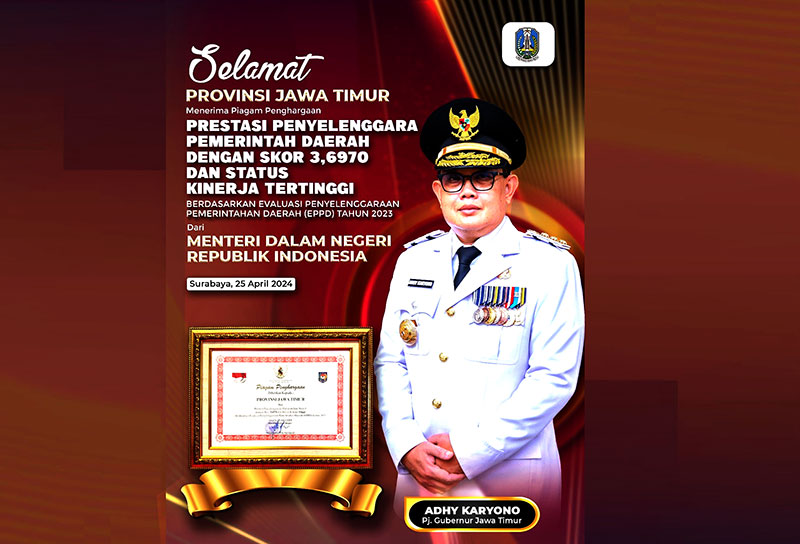 JATIMPOS.CO//SURABAYA- Pemerintah Provinsi Jawa Timur menerima Piagam Penghargaan Prestasi Pemerintah Daerah di Upacara Peringatan Hari Otonomi Daerah ke 28 yang diselenggarakan di Taman Surya Balai Kota Surabaya, Kamis (25/4).