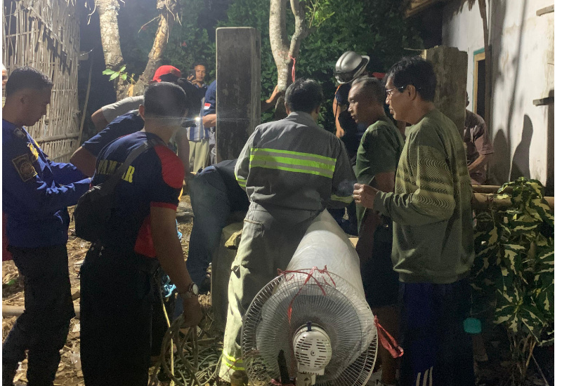JATIMPOS.CO/BONDOWOSO. Seekor anak sapi berusia 10 hari milik warga Desa Pakuwesi, Kecamatan Curahdami, Bondowoso, berhasil diselamatkan oleh petugas Pemadam Kebakaran (Damkar) setelah tercebur ke dalam sumur sedalam kurang lebih 15 meter, Kamis (25/09/2025) sore.