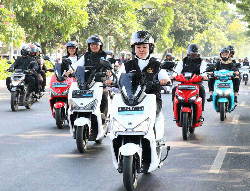 JATIMPOS.CO//SURABAYA - Gubernur Jawa Timur Khofifah Indar Parawansa turun langsung dalam gerakan bersama konvoi motor listrik dan menanam 20.000 mangrove di Ekowisata Mangrove Gunung Anyar bersama PT PLN, DEN dan pegiat Mangrove, Jumat (9/6) pagi.