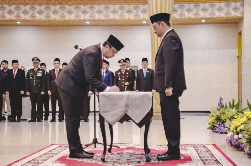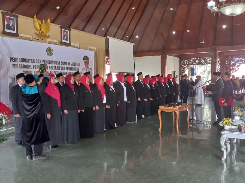 JATIMPOS.CO/PAMEKASAN - Penjabat Bupati Pamekasan, Madura, Jawa Timur, Masrukin melantik 33 pengawas sekolah untuk tingkat TK, SD, dan SMP di Mandhapa Agung Ronggosukowati, Kamis (14/11/2024) siang.