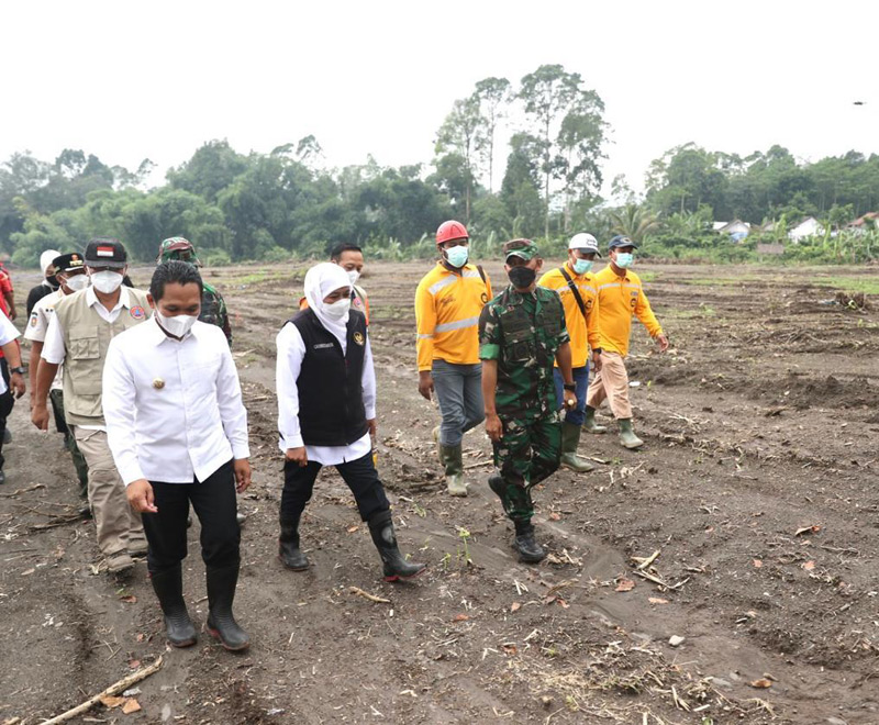 JATIMPOS.CO//LUMAJANG- Gubernur Jawa Timur Khofifah Indar Parawansa mengapresiasi kecepatan kerja Pemerintah dan Forkopimda Kabupaten Lumajang dan pihak terkait dalam menyiapkan lahan relokasi untuk membangun hunian sementara (huntara) dan hunian tetap (huntap) untuk warga terdampak APG Semeru.