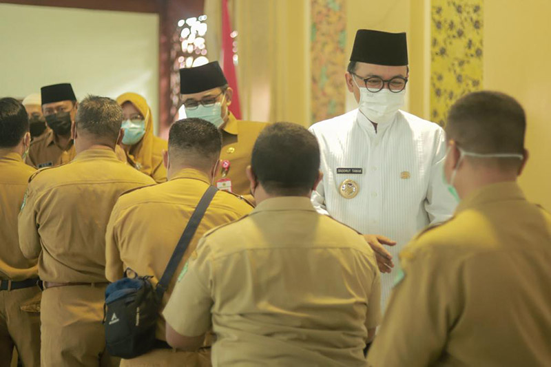 JATIMPOS.CO/PAMEKASAN - Setelah melaksanakan cuti bersama dalam rangka merayakan hari raya idul Fitri 1443 Hijriyah, Pemerintah Kabupaten (Pemkab) Pamekasan, Madura, Jawa Timur menggelar acara halal bihalal bersama aparatur sipil negara (ASN) di lingkungan Pemkab setempat.