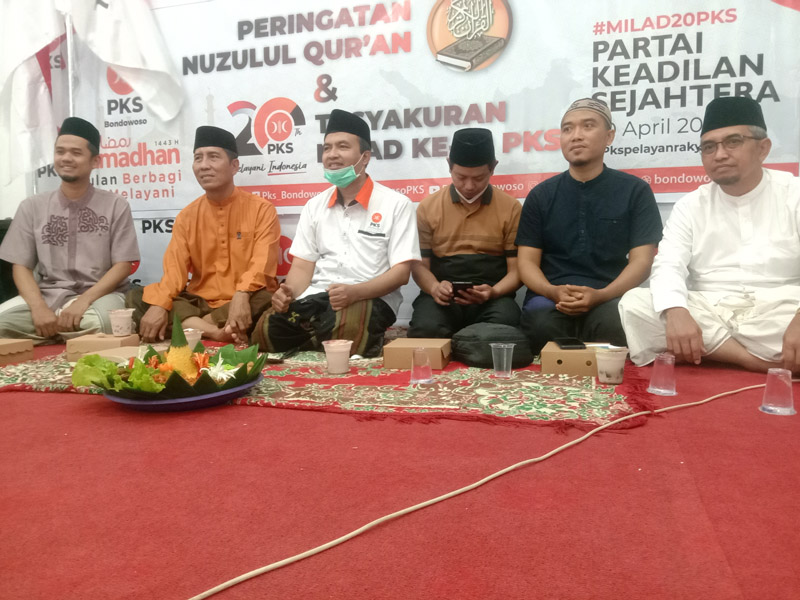 JATIMPOS.CO/BONDOWOSO - Dalam rangka memperingati Nuzulul Qur'an dan tasyakuran Milad Ke 20 Partai Keadilan Sejahtera (PKS), Dewan Pimpinan Daerah (DPD) PKS Bondowoso gelar Khotmil Qur'an bersama para pengurus Partai di Kantor DPD PKS Bondowoso, Rabu (20/4/2022).