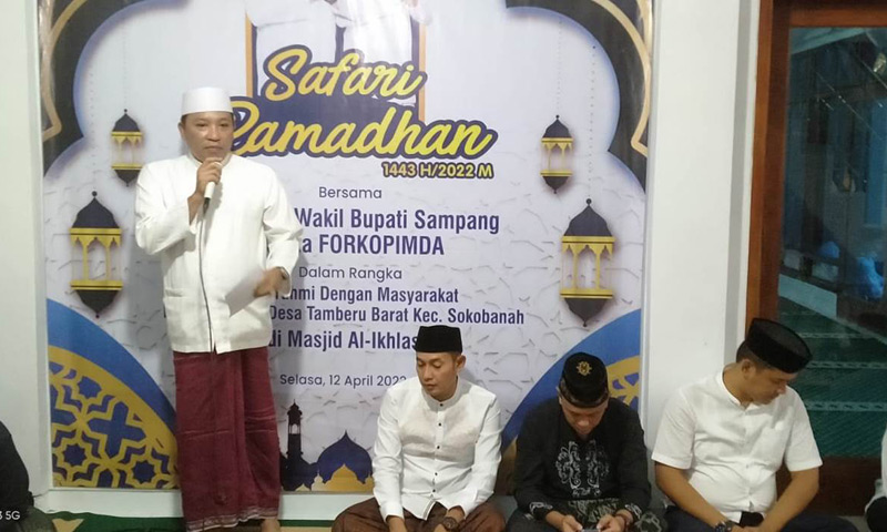 JATIMPOS.CO/PAMEKASAN - Bupati Pamekasan, Madura, Jawa Timur menyalurkan bantuan dana hibah untuk musolla dan masjid tahun 2022. Hal itu dilakukan orang nomor satu di Pamekasan saat melakukan safari ramadan di Kantor Kecamatan Pademawu dan Kantor Kecamatan Galis bersama forum koordinasi pimpinan daerah (forkopimda), Minggu (17/4/2022) sore.