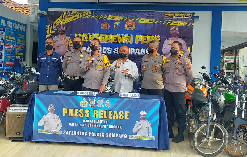 JATIMPOS.CO/SAMPANG - Sebanyak 40 unit kendaraan roda dua yang melakukan balap liar berhasil diamankan Polres Sampang, Selasa (29/3/2022).