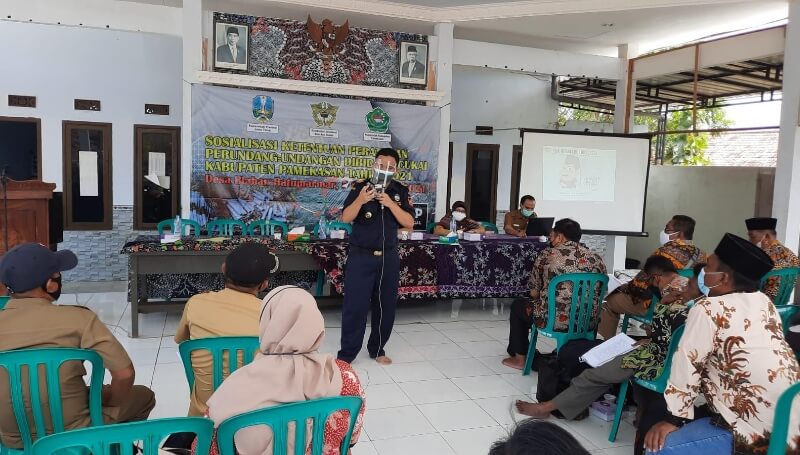 JATIMPOS.CO/PAMEKASAN - Pemerintah Kabupaten (Pemkab) Pamekasan bersinergi dengan Bea Cukai Madura, menggelar aksi sosialisasi tentang bahayanya rokok ilegal dan pemanfaatan Dana Bagi Hasil Cukai Hasil Tembakau (DBHCHT) tahun anggaran 2021, di Balai Desa Blaban, Kecamatan Batumarmar, Pamekasan, Madura, Jawa Timur, Senin (6/9/2021).