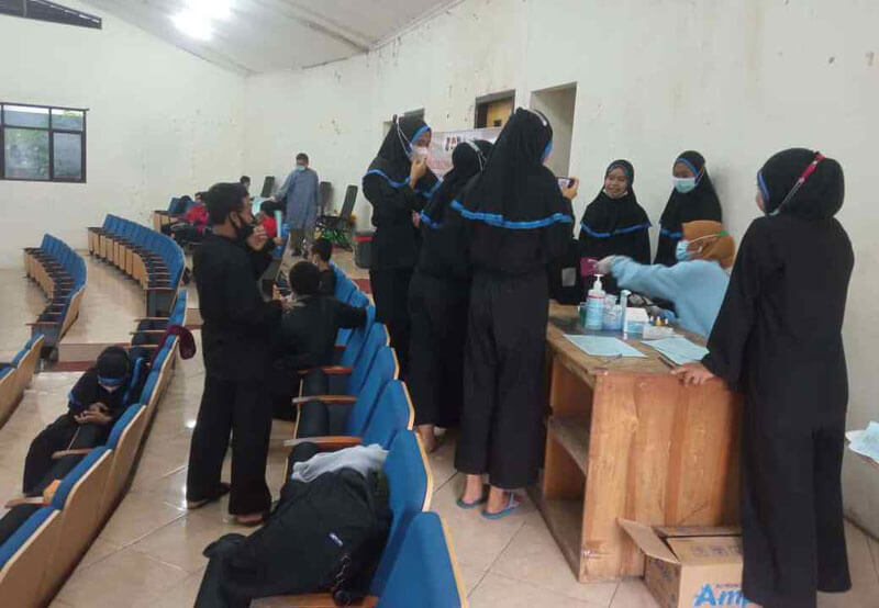 JATIMPOS.CO//JEMBER - Anggota perguruan silat PSHT Komisariat Universitas Islam Negeri Kiai Ahmad Shiddiq Jember turut memperingati hari donor darah sedunia dengan cara melakukan sosialisasi dan donor darah di Gedung Teater UIN KHAS Jember.