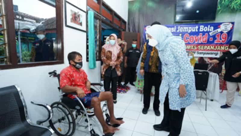 JATIMPOS.CO/BANYUWANGI - Pemkab Banyuwangi mulai melaksanakan vaksinasi Covid-19 kepada warga lanjut usia (lansia) dan penyandang disabilitas dengan fasilitas jemput bola. Bupati Banyuwangi Ipuk Fiestiandani langsung mengawal pelaksanaan pada tahap awal ini, yang akan terus diperluas menunggu kedatangan vaksin dari pemerintah pusat.