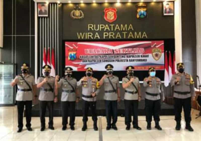 JATIMPOS.CO/BANYUWANGI - Kapolresta Banyuwangi Kombes Pol Arman Asmara S memimpin serah terima jabatan (sertijab) Kasat Lantas di gedung Rupatama dengan menerapkan protokol kesehatan, Senin (22/3/2021).