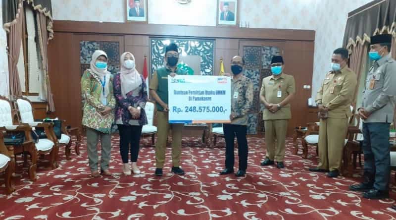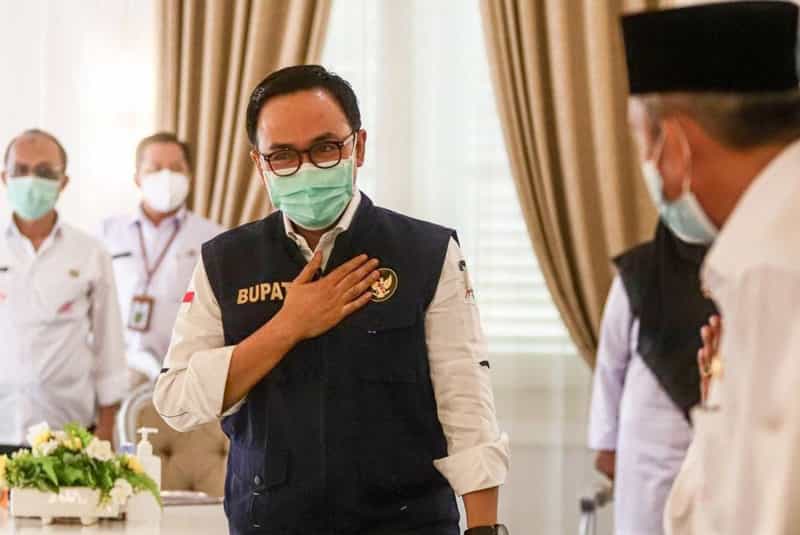 JATIMPOS.CO//BONDOWOSO. Bupati Bondowoso KH. Salwa Arifin serahkan Ban Lengan Satgas Covid 19 kepada sejumlah Kelurahan di Kecamatan Bondowoso serta penghargaan terhadap 4 Hotel tangguh dan 2 Cafe tangguh, di Kantor Kecamatan Bondowoso, Kamis (18/3/2021).