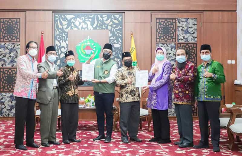 JATIMPOS.CO/PAMEKASAN - Bupati Pamekasan, Baddrut Tamam bersama Dandim 0826 Pamekasan, Letkol Inf Tejo Baskoro, Wakapolres Pamekasan, Kompol Asrori Khadafi dan Sekda Pamekasan, Ir Totok Hartono serta stakeholder Kabupaten Pamekasan, menyambut kedatangan Brigjen TNI Agus Setiawan, Kasdam V/Brawijaya beserta rombongan, di Pendopo Agung Ronggosukowati Pamekasan, Madura, Rabu (24/2/2021).