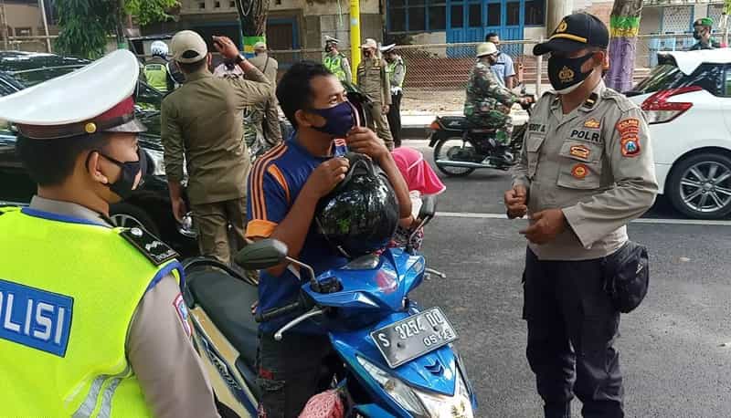 Portal Berita Jawa Timur JATIMPOS.CO/PAMEKASAN - Petugas gabungan kembali menggelar operasi yustisi Covid-19, di Area Bundaran Arek Lancor, Pamekasan.