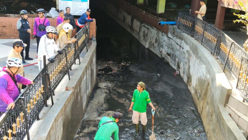 JATIMPOS.CO/KOTA MADIUN — Hujan deras disertai angin yang mengguyur Kota Madiun selama sekitar dua jam pada Minggu (21/9/2025) sore membuat saluran air di kawasan wisata Pahlawan Religi Center (PRC) meluap. Air sempat menggenangi area sekitar miniatur Menara Eiffel sebelum akhirnya surut setelah tanggul di sisi barat Jalan Pandan dibuka.