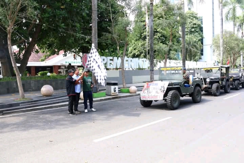 JATIMPOS.CO/BOJONEGORO – Bupati Bojonegoro, Setyo Wahono, secara resmi memberangkatkan sembilan perwakilan peserta dari Komunitas Bojonegoro Willys Club (BWC) untuk mengikuti Jambore Nasional American Jeep XIII. Acara pelepasan berlangsung pada Jumat (4/7/2025) di Jalan Mas Tumapel, Bojonegoro.